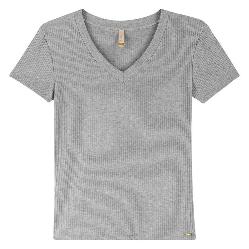 Blusa Básica Feminina Adulto Marialícia em Malha Canelada