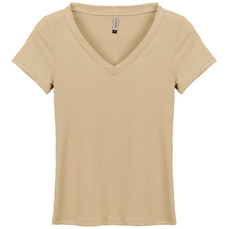 Blusa Básica Feminina Adulto Marialícia em Malha Canelada