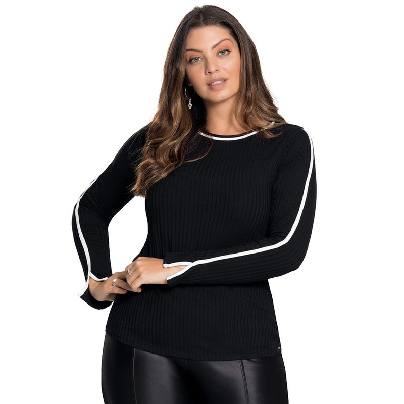 Blusa Canelada Feminina Adulto Lunender Mais Mulher em Malha Canelado Tracy
