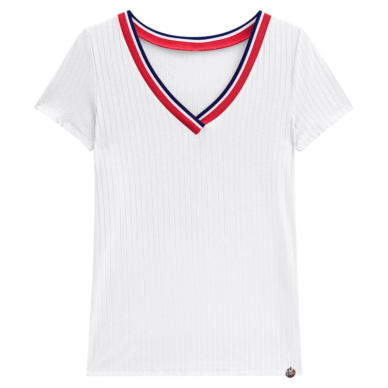 FemininoRoupasBlusasManga curtaBlusa Canelada Feminina Adulto Lunender
