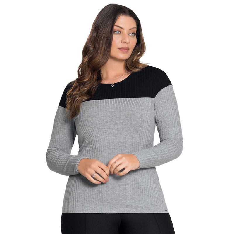 Blusa Canelada Feminina Adulto Lunender Mais Mulher em Malha Canelado Tracy