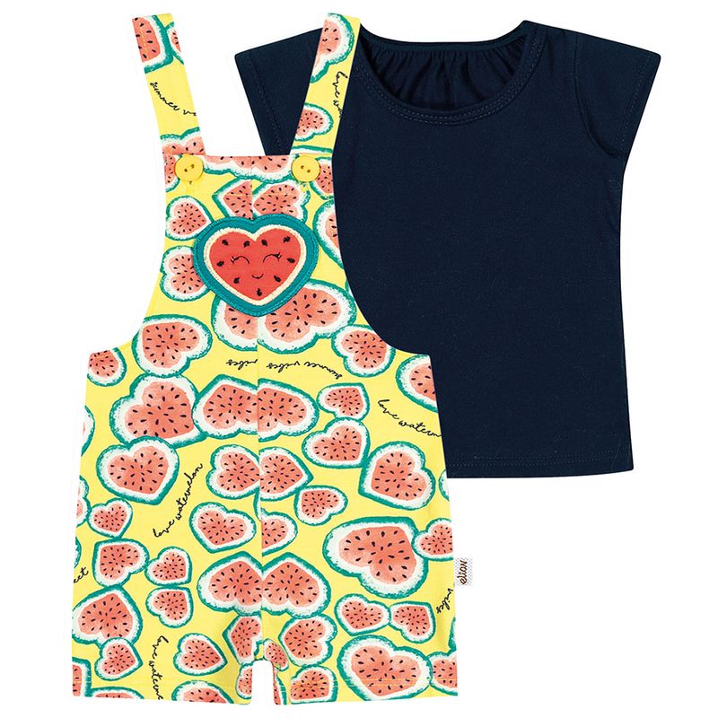 Blusa e Jardineira Bebê Elian em Cotton Leve e Meia Malha Penteada