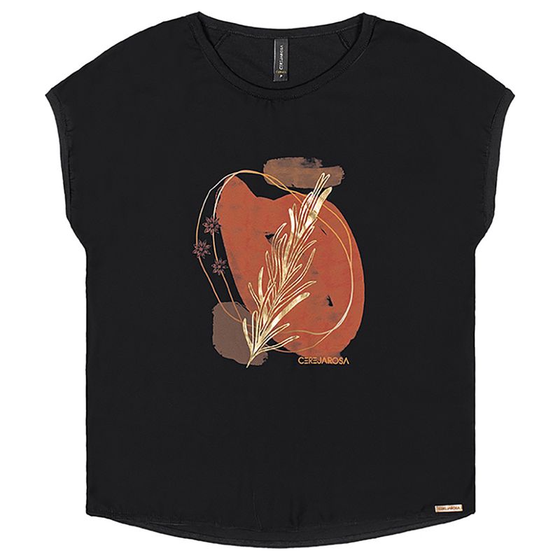 Blusa Feminina Adulto Cereja Rosa Curves em Tecido Plano Resort e Viscose Crepe