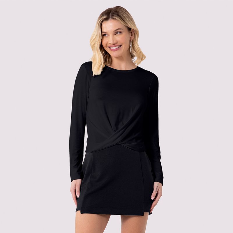 Blusa Feminina Adulto Lunender 65209 Material: MALHA VISCOSE COM ELASTANO Manga: MANGA LONGA SEM PUNHO Abertura: FECHADA Detalhe Transpassado