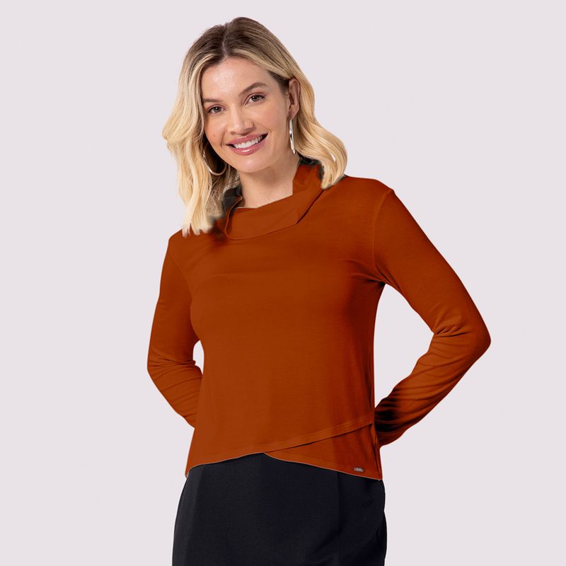Blusa Feminina Adulto Lunender 65213 Material: MALHA VISCOSE COM ELASTANO Manga: MANGA LONGA SEM PUNHO Abertura: FECHADA Detalhe Transpassado