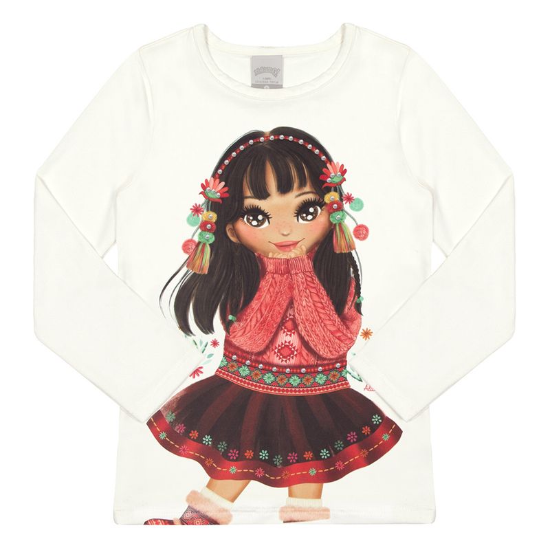 Blusa Feminina Infantil Alakazoo 67946 Material: MALHA MODELLI Manga: MANGA LONGA SEM PUNHO Abertura: FECHADA Strass na Blusa