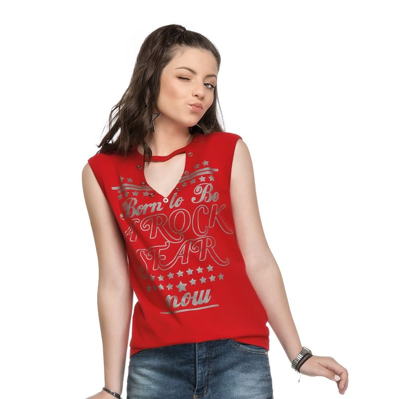 Blusa Feminina Juvenil Romitex de Meia Malha Penteada