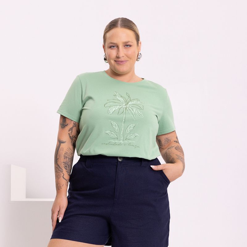 Blusa Feminina Lunender Mais Mulher 47637 Material: MEIA MALHA PENTEADA Manga: MANGA CURTA Abertura: FECHADA