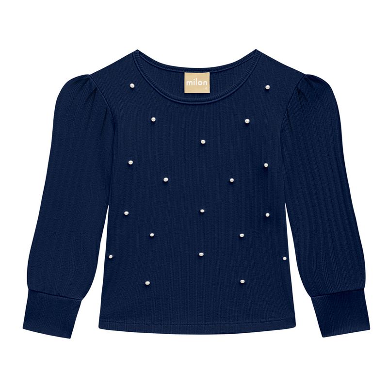 Blusa Feminina Primeiros Passos 2000114 Material: MALHA Manga: MANGA LONGA COM PUNHO Abertura: FECHADA Aplicação de Pérolas