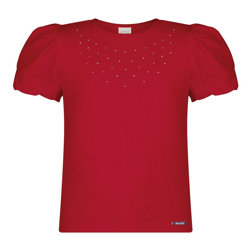 Blusa Feminina Primeiros Passos Alakazoo 0011 Material: MALHA CANELADO SEVILHA E RAYON TWILL Manga: MANGA CURTA Abertura: FECHADA Aplique Strass Manga Balonê