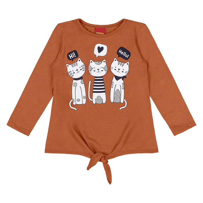 Blusa em Meia Malha Gatinhas Menina Infantil Kyly 207936