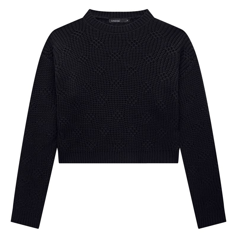 Blusão Cropped Feminino Adulto Lunender 45594 Material: TRICO Manga: MANGA LONGA SEM PUNHO Abertura: FECHADA