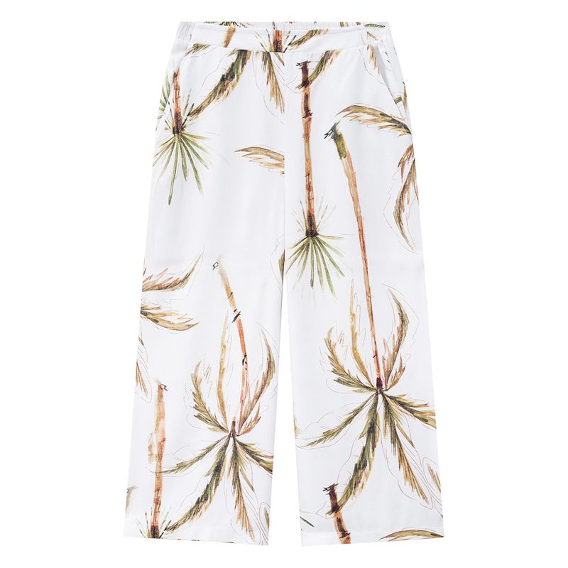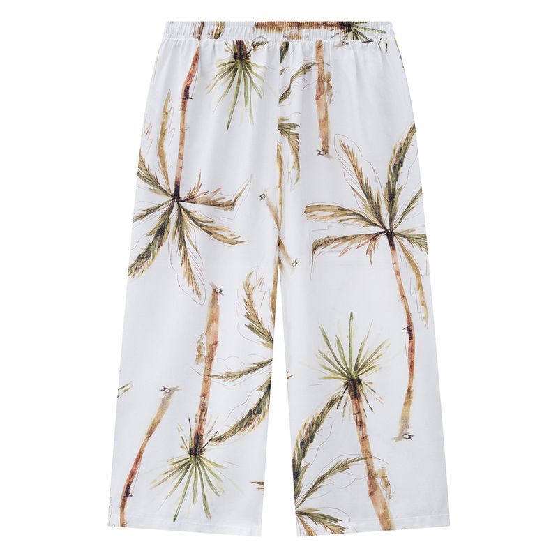 Calça Pantacourt Coqueiros Feminina Adulto Lunender em Tecido Rayon Twill