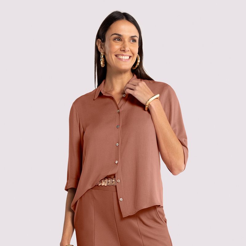 Camisa Feminina Adulto Lunender 65221 Material: TECIDO RAYON TWILL Manga: MANGA 3/4 Abertura: BOTAO