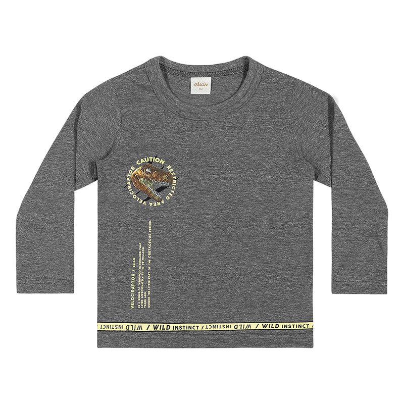 Camiseta Dinossauro Primeiros Passos Elian em Meia Malha Penteada