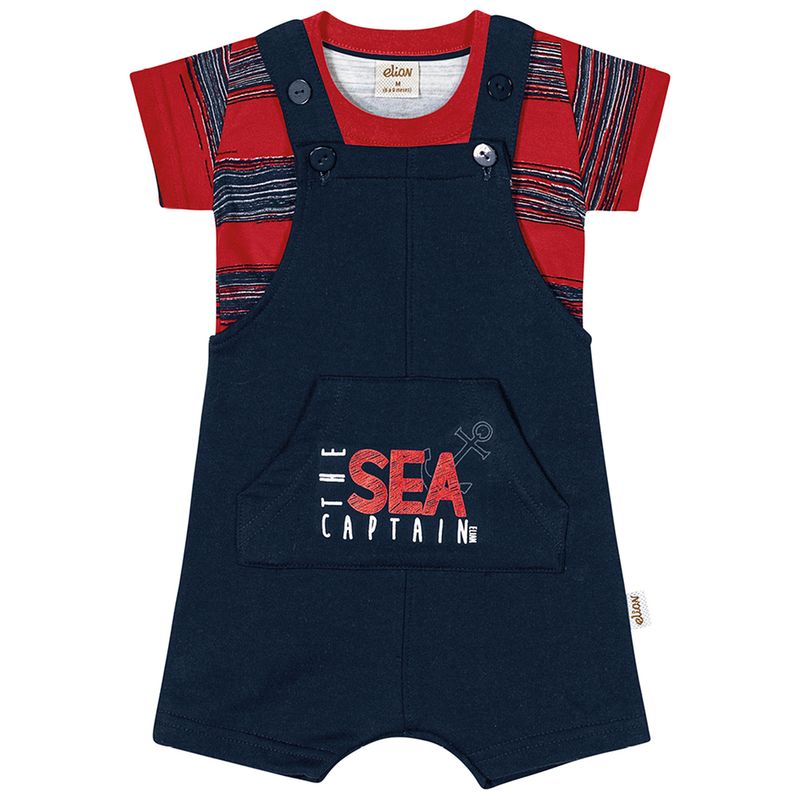 Camiseta e Jardineira Bebê Elian em Meia Malha Penteada e New Moletinho Light