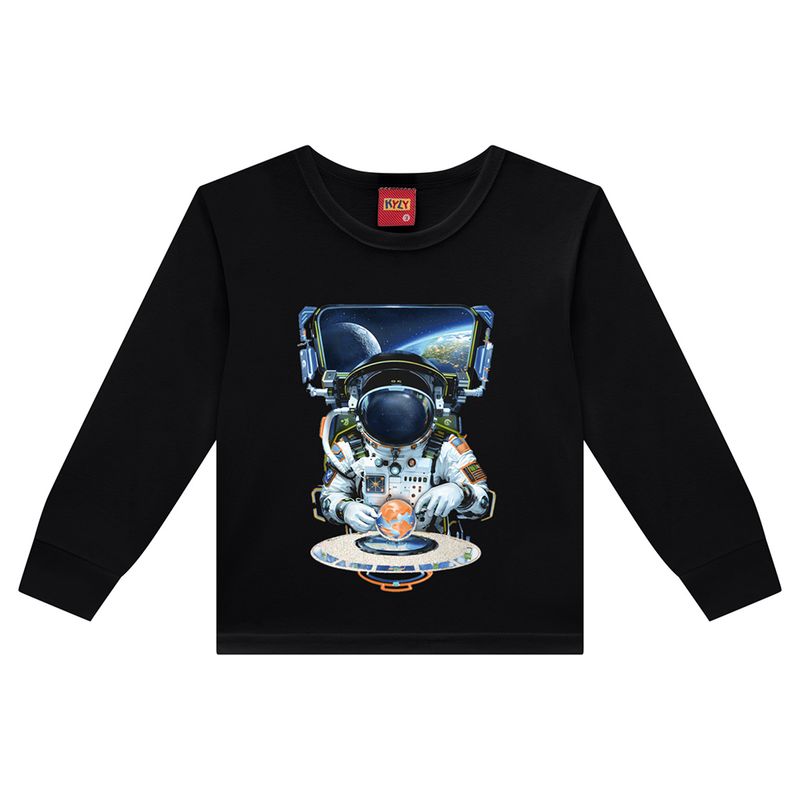 Camiseta Masculina Infantil Kyly 1000820 Material: MEIA MALHA Manga: MANGA LONGA COM PUNHO Abertura: FECHADA Estampa Metalizada
