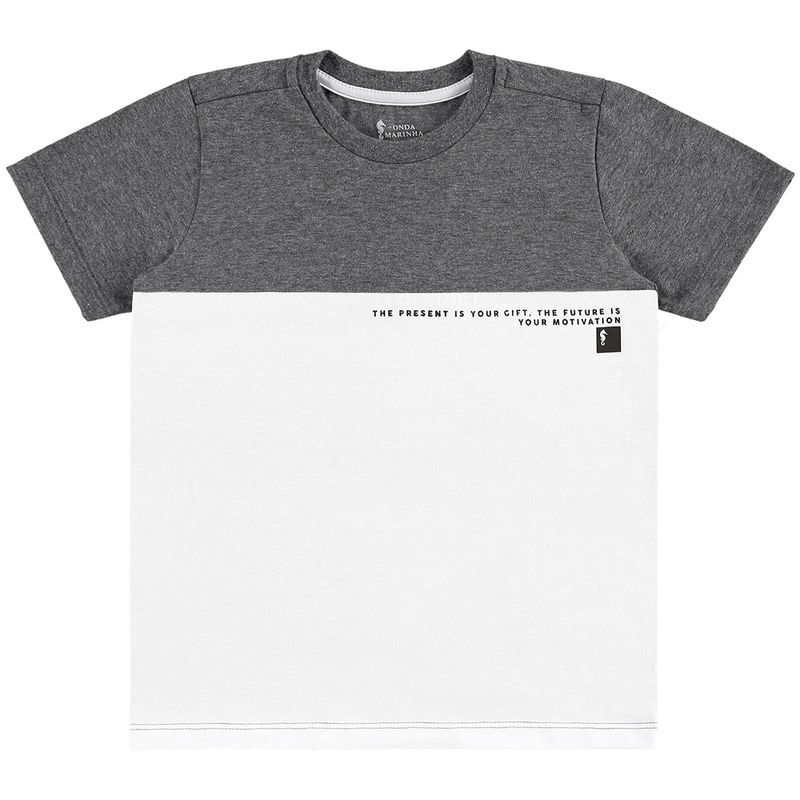 Camiseta Masculina Infantil Onda Marinha em Meia Malha com Estampa e Recorte
