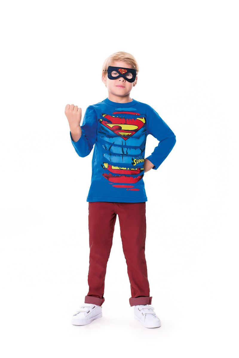 Camiseta Superman Primeiros Passos Marlan Meia Malha Penteada com Máscara