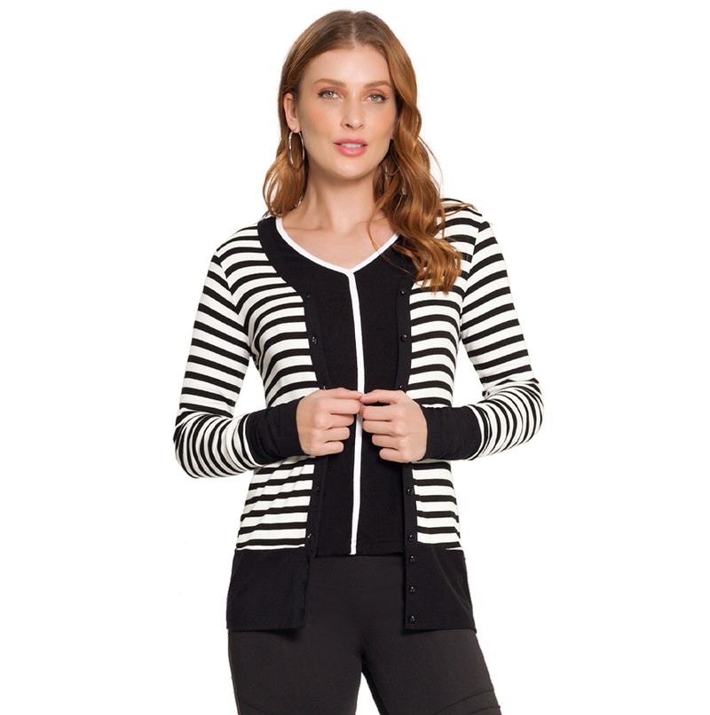 Cardigan Listrado Feminino Adulto Lunender em Malha Rib Fio Tinto e Crepe Viscose com Elastano