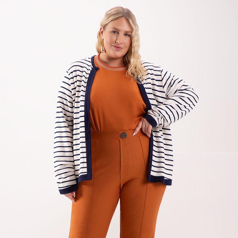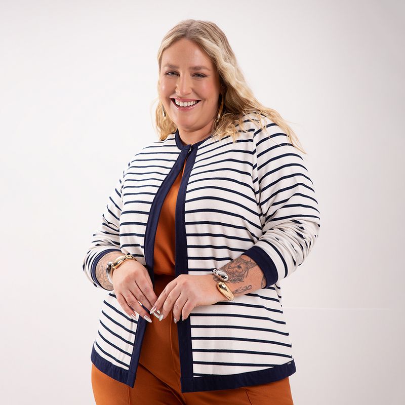 Casaco Feminino Adulto Mais Mulher Lunender 69187 Material: MALHA SARJA LISTRADA Manga: MANGA LONGA SEM PUNHO Barra: BARRA TRADICIONAL Abertura: ABERTA