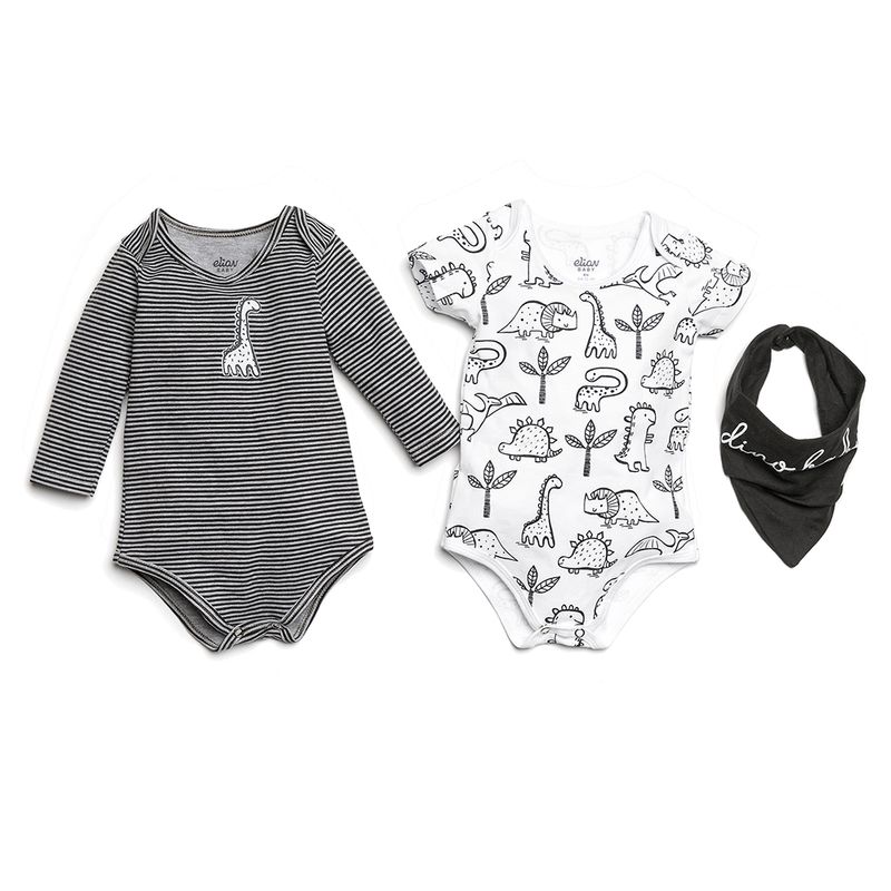 Conjunto 2 Bodies e Babador de Menino Bebê Elian em Meia Malha Penteada e Cotton Leve