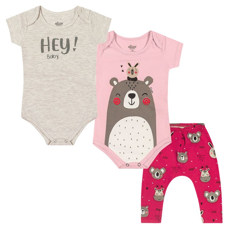Conjunto 2 Bodies e Calça Saruel de Menina Elian Bebê