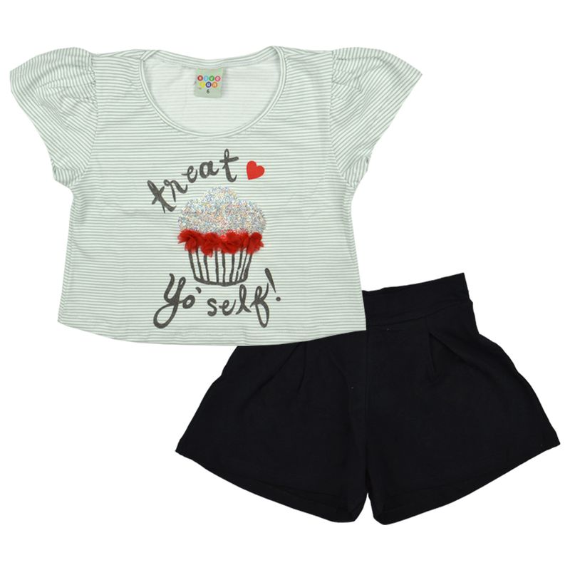 Conjunto Blusa Cropeed e Shorts Have Fun | Blusa em Cotton Leve e Shorts Cotton