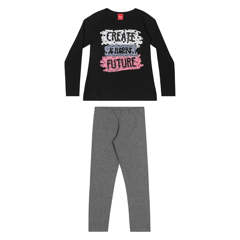Conjunto Blusa e Calça de Menina Juvenil Elian em Meia Malha Penteada e Cotton Confort