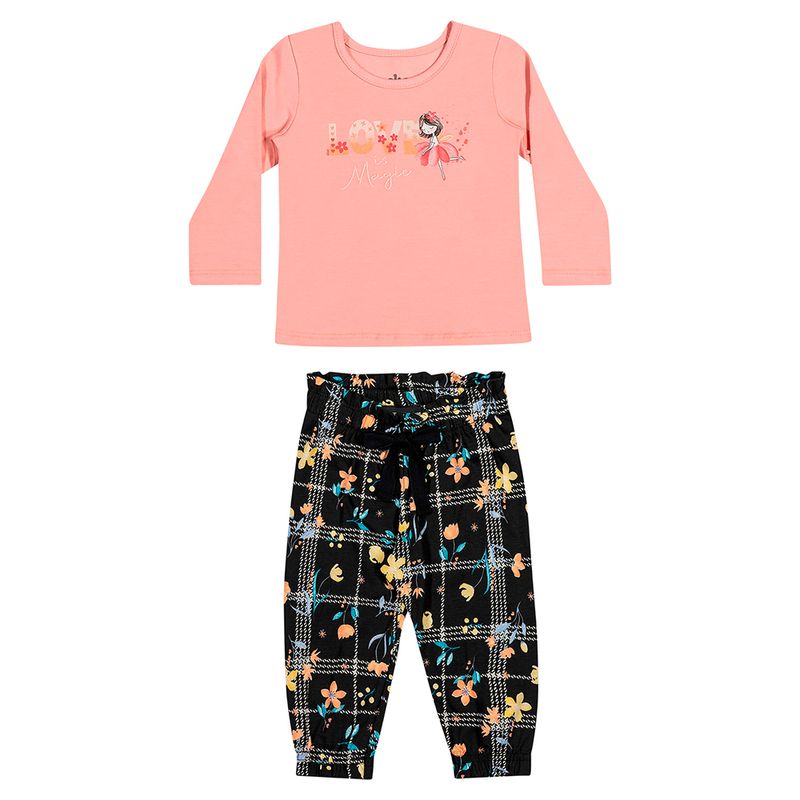 Conjunto Blusa e Calça Menina Bebê Elian em Cotton Leve e Meia Malha
