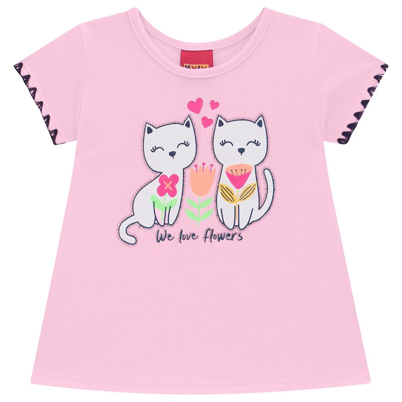 Conjunto Blusa e Legging Gatinha Bebê Kyly em Meia Malha e Cotton