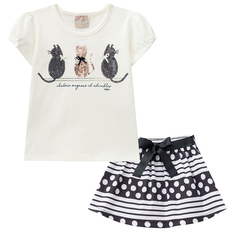 Conjunto Blusa e Saia com Short Interno Milon | Blusa 96% Cotton 4% Elastano e Saia Tafetá