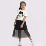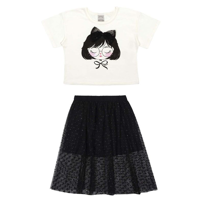Conjunto Blusa e Saia Feminino Infantil Alakazoo 46737 Material: MEIA MALHA PENTEADA E TULE Manga: MANGA CURTA Abertura: FECHADA