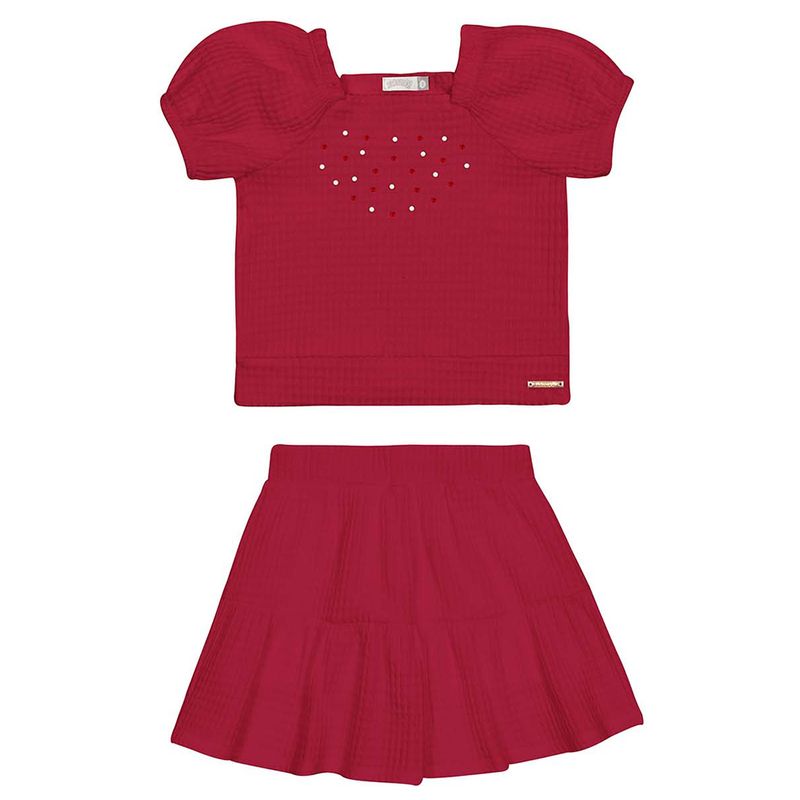 Conjunto Blusa e Saia Feminino Infantil Alakazoo 46860 Saia com Shorts Embutido Material: MALHA WAFFLE Manga: MANGA CURTA Abertura: FECHADA
