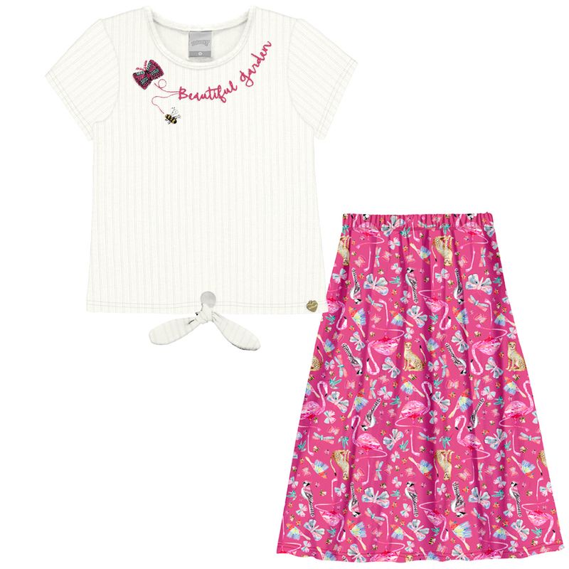Conjunto Blusa e Saia Longa Juvenil Alakazoo em Malha Canelado Wave e Malha Lightness