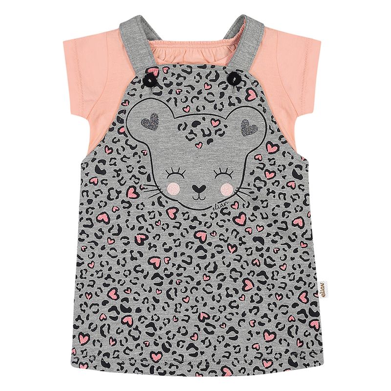 Conjunto Blusa e Salopete de Menina Bebê Elian em Meia Malha Penteada e New Moletinho