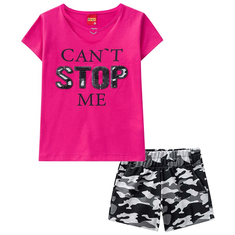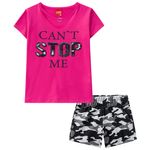 TeenRoupasConjuntosConjunto de verãoConjunto Blusa e Short Camuflado Moletinho Kyly