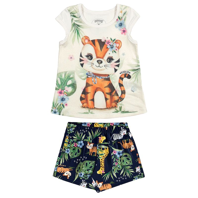 Conjunto Blusa e Shorts de Menina Bebê Alakazoo em Malha Modelli e Meia Malha Penteada