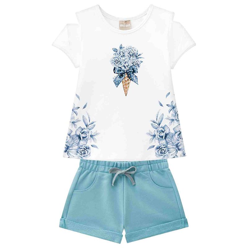 Conjunto Blusa e Shorts de Menina Bebê Milon em Cotton e Moletom sem Felpa