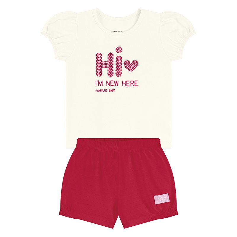 Conjunto Blusa e Shorts Feminino Bebê Kamylus 53735 Material: COTTON LEVE E MALHA NIKKO Manga: MANGA CURTA Barra: BARRA TRADICIONAL Abertura: FECHADA
