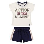 Conjunto Blusa e Shorts Feminino Infantil Elian em Meia Malha Penteada e Moletinho sem Felpa