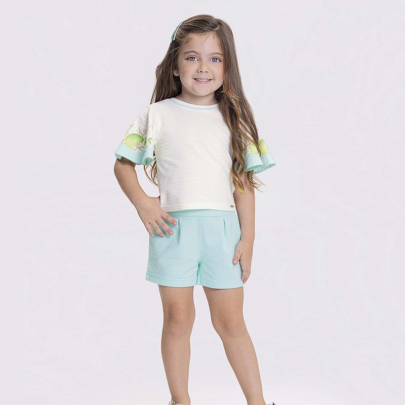Conjunto Blusa e Shorts Feminino Primeiros Passos Alakazoo 46050 Material: MALHA NIKKO Manga: MANGA CURTA Barra: BARRA TRADICIONAL Abertura: FECHADA