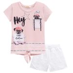 Conjunto Blusa e Shorts Feminino Primeiros Passos Kukiê | em Meia Malha e Jacquard Texturizado