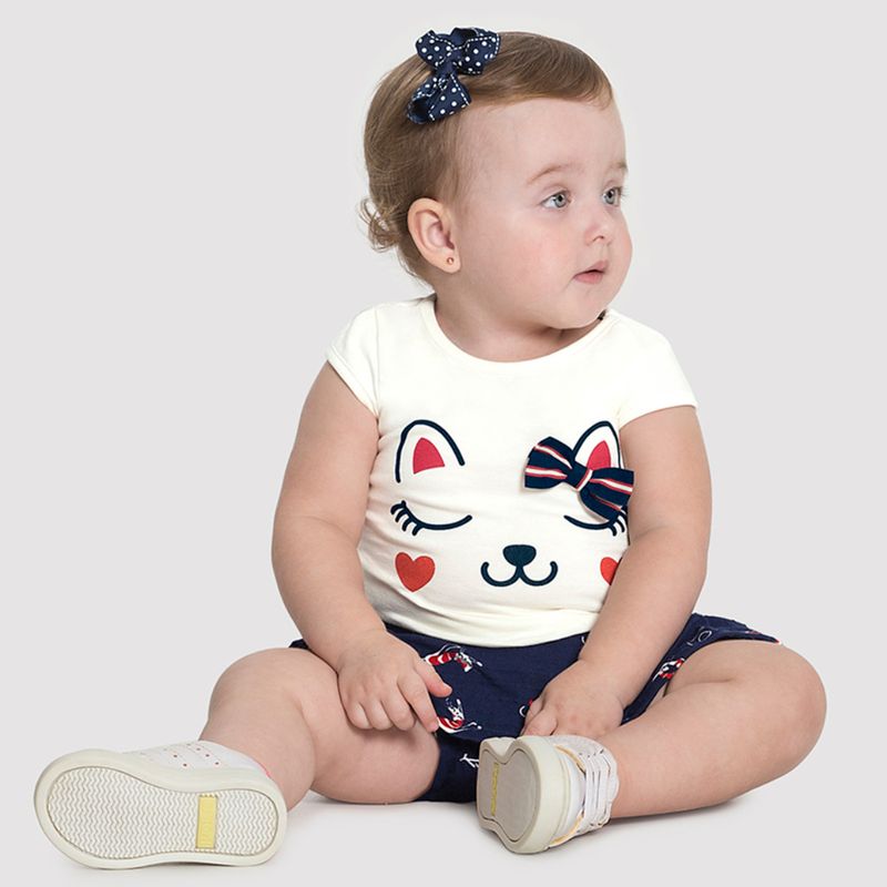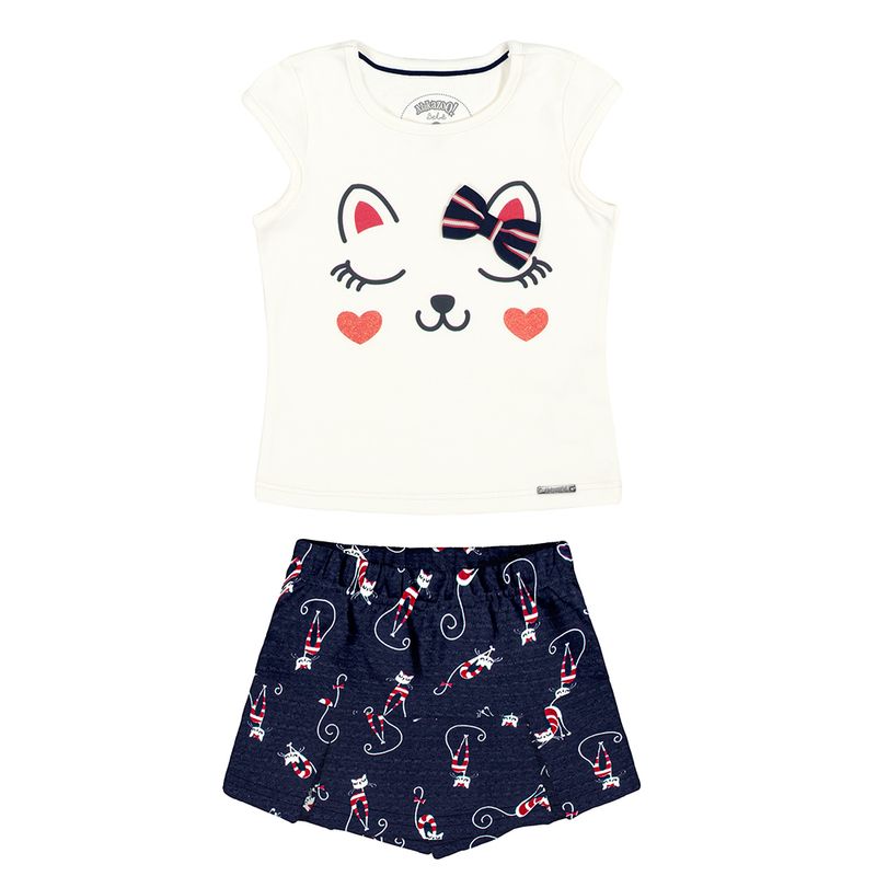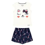 Conjunto Blusa e Shorts Gatinha Bebê Alakazoo em Cotton Soft e Nikko