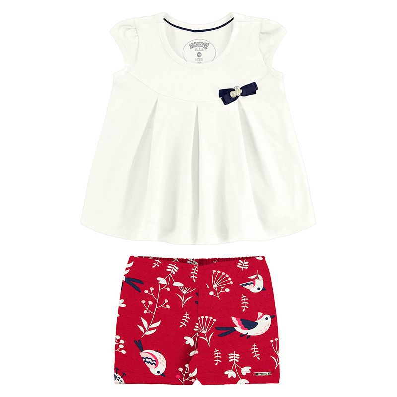 Conjunto Blusa e Shorts Passarinhos Bebê Alakazoo em Malha Cotton Soft e Nikko