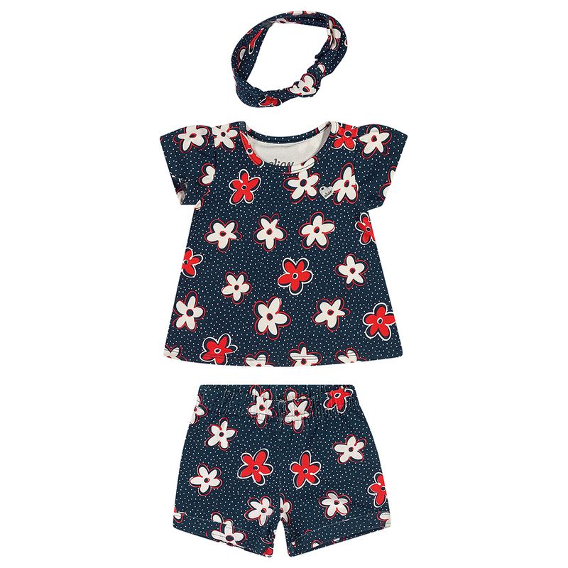 Conjunto Blusa, Faixa e Shorts Elian Bebê em Cotton Leve