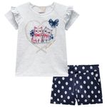 BebêRoupasConjuntosConjunto de verãoConjunto Blusa Gatinhas e Short Moletinho Milon