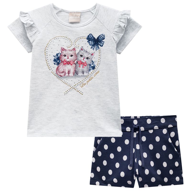 Conjunto Blusa Gatinhas e Short Moletinho Milon Blusa em Meia Malha e Short em Moletom sem Peluciar