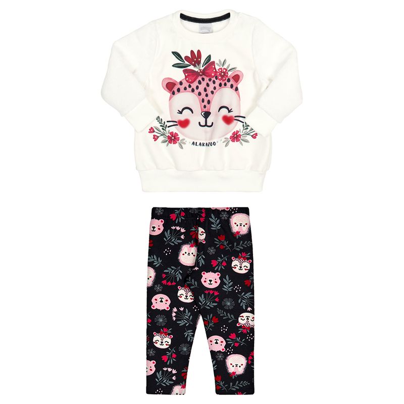 Conjunto Blusão e Calça de Menina Bebê Alakazoo em Pelo Fuflly, Moletinho Soft e Molecotton Felpado