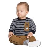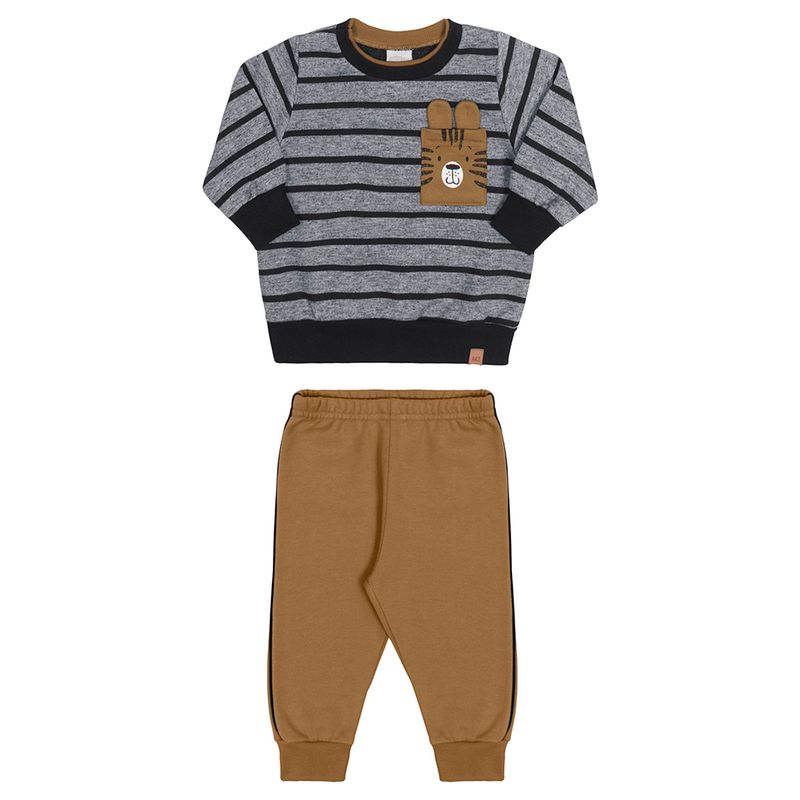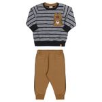 Conjunto Blusão e Calça de Menino Bebê Alakazoo em Moletom Linen Stripe e Moletom Felpado